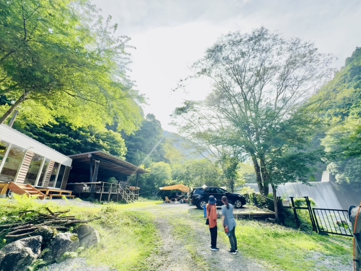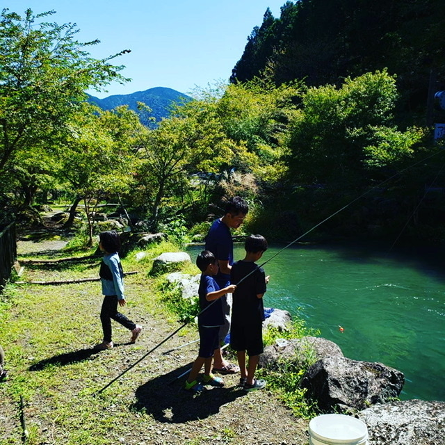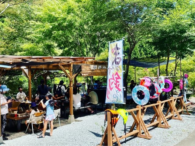 美しい清流・福士川のほとりに広がる自然に囲まれた空間で、