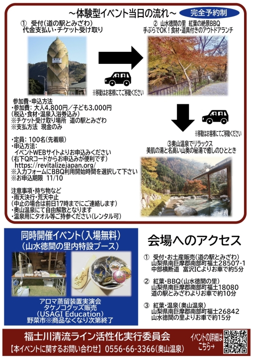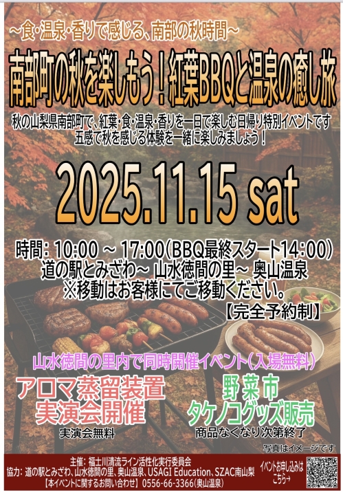 秋の山梨県南部町で、紅葉、食、温泉、香りを一日で楽しむ日帰りイベントを開催します。